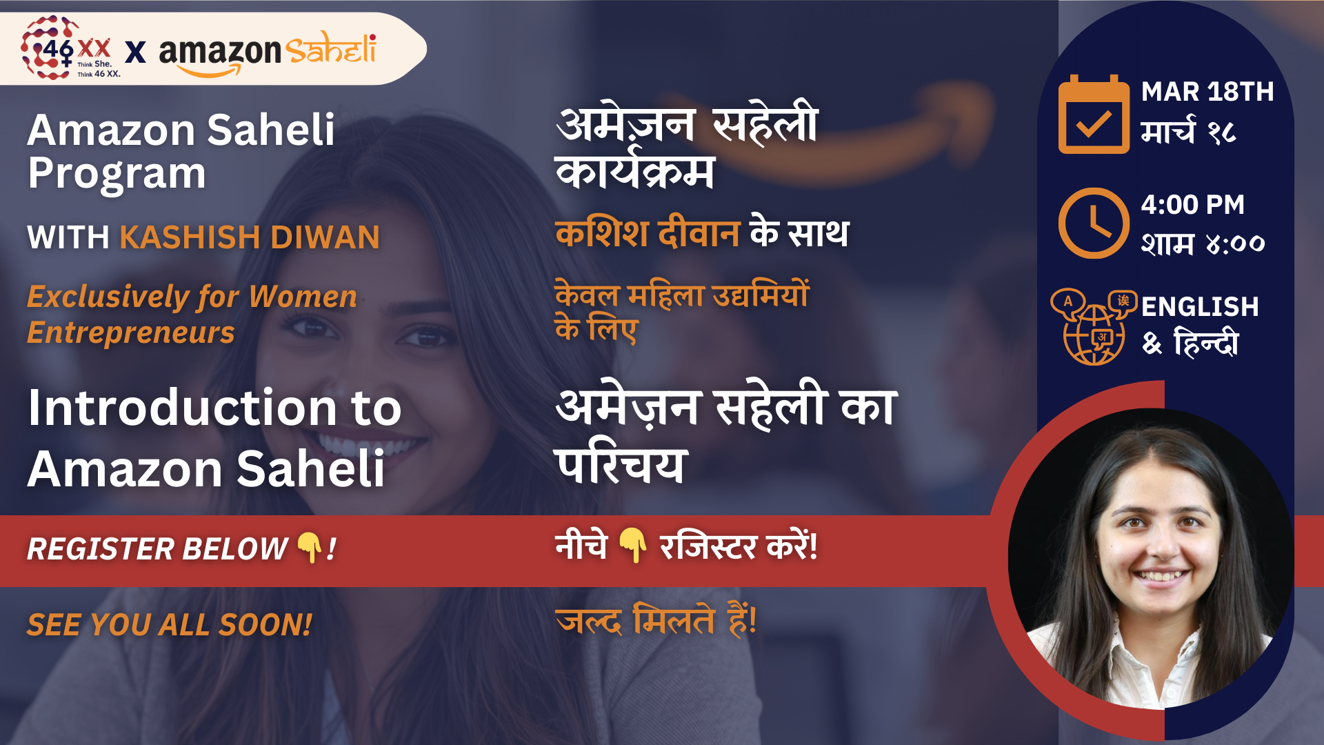 Prior to attending this workshop, YOU can get a glimpse into Amazon Saheli Program, check your eligibility criteria & register to participate here.